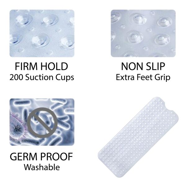 This long bath mat adheres to non-textured surfaces with 200 strong suction cups, providing a safe, non-slip experience in your bathroom.